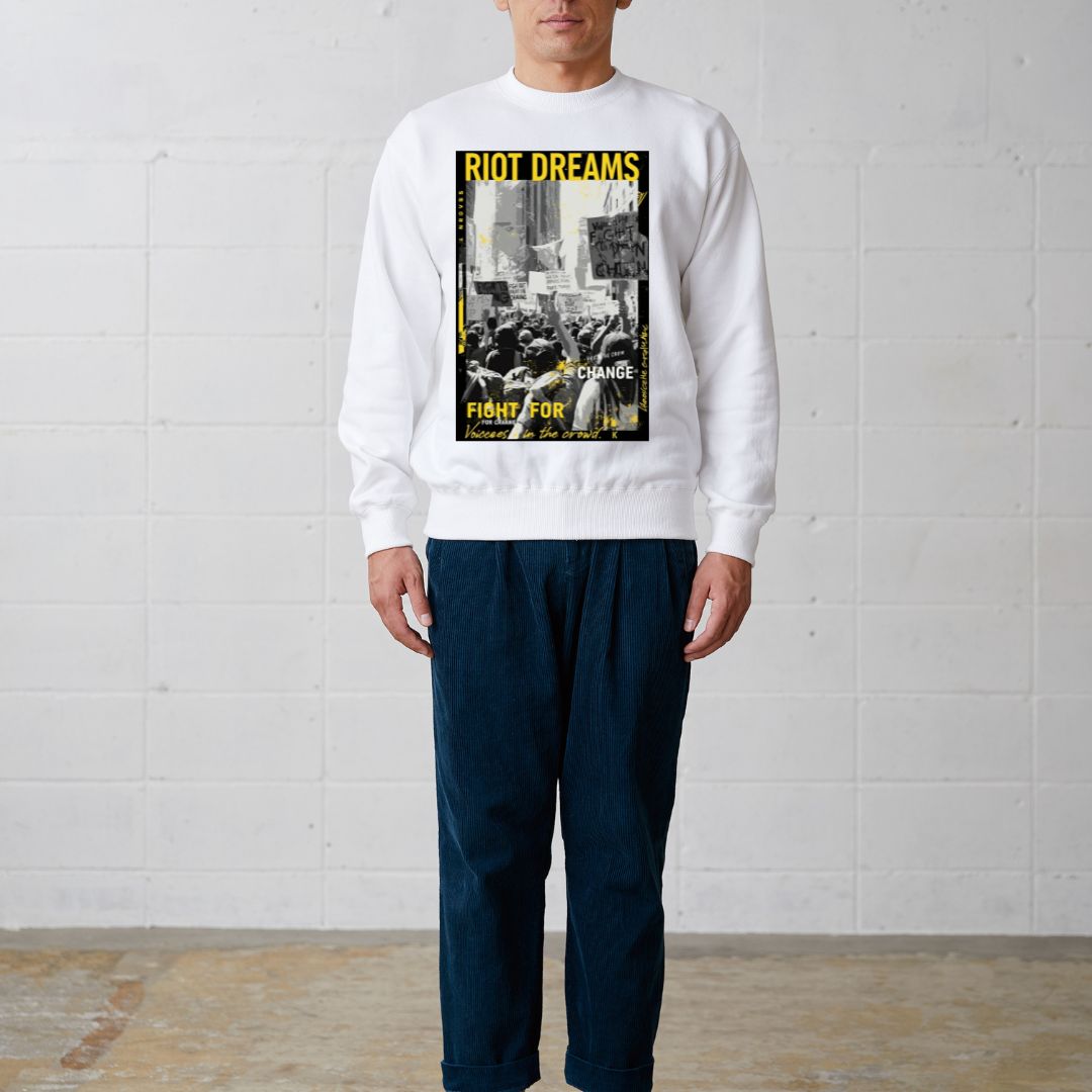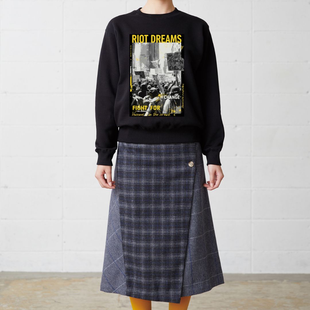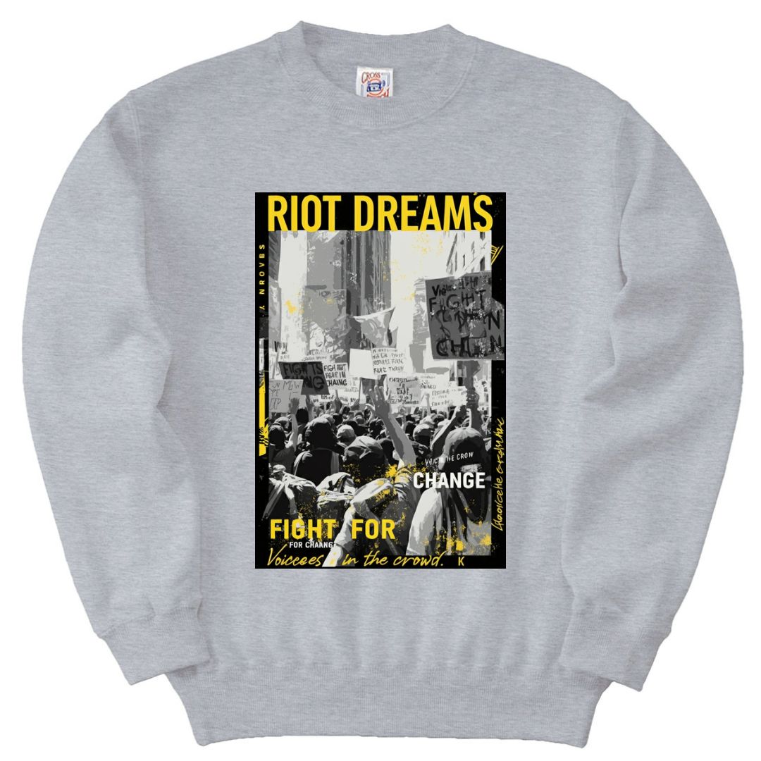 大胆な「RIOT DREAMS」グラフィックが目を引くユニセックスデザインのトレーナーです。ストリート感溢れるプリントがスタイルにアクセントを加え、カジュアルコーデに取り入れやすい一枚。