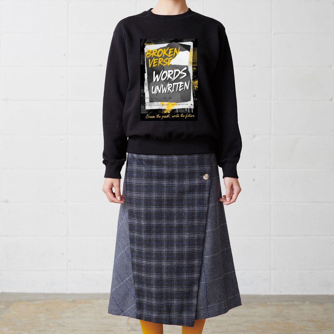 大胆なフレームデザインと「Words Unwritten」のテキストプリントが特徴