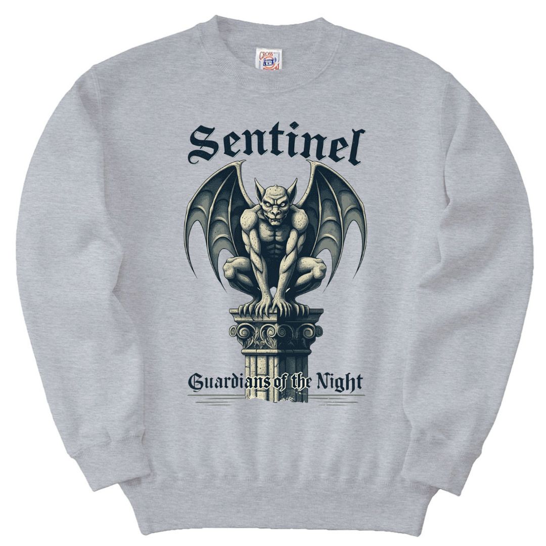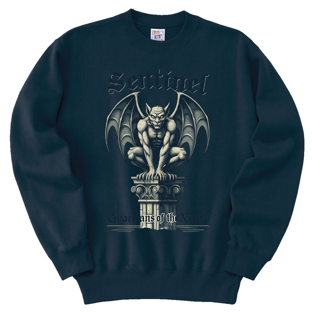 夜を守る守護者、ガーゴイルを描いた重厚感のあるデザインが特徴のトレーナーです。