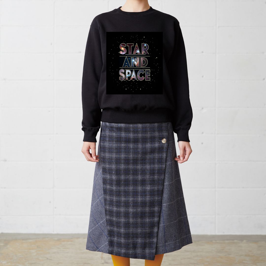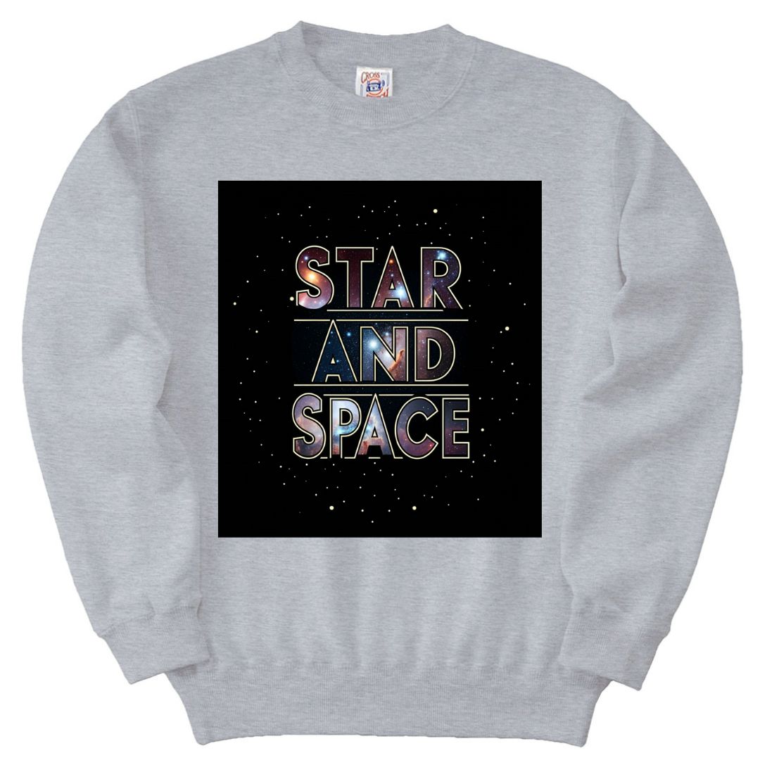 広大な宇宙と星々をテーマにした、存在感のあるグラフィックデザインが魅力のトレーナーです。