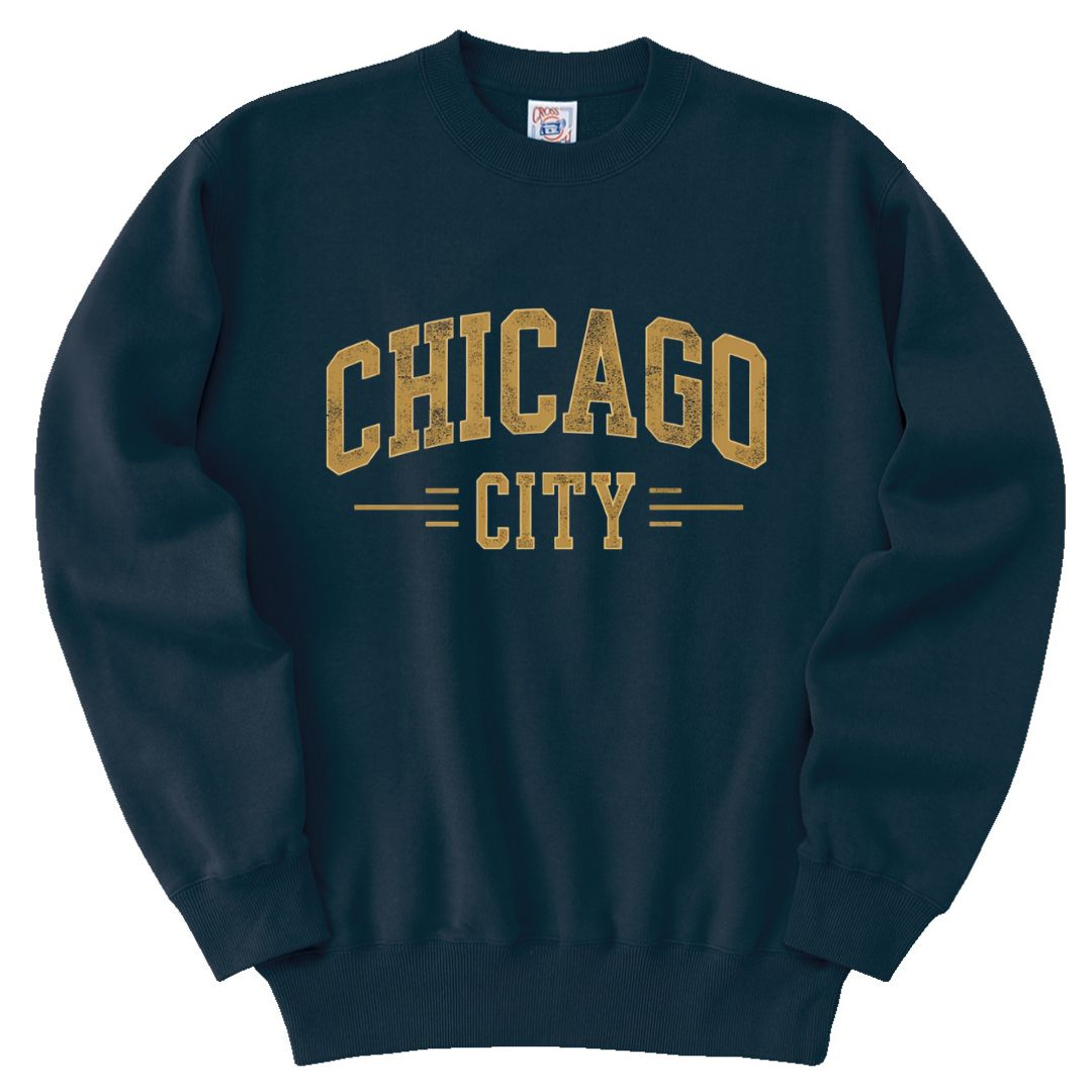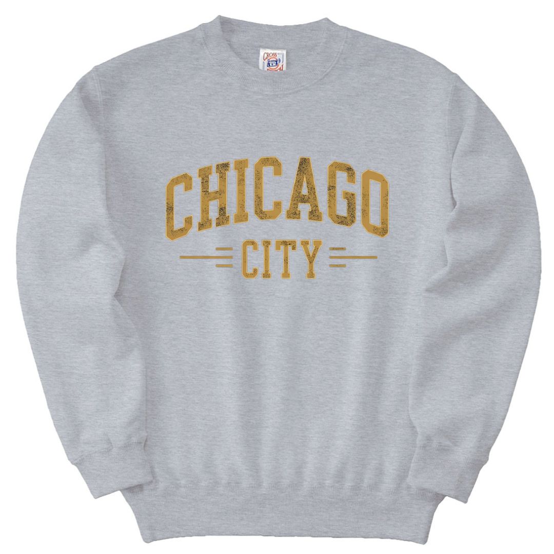 シカゴの都市感を表現した「CHICAGO CITY」のロゴが特徴的なトレーナー。