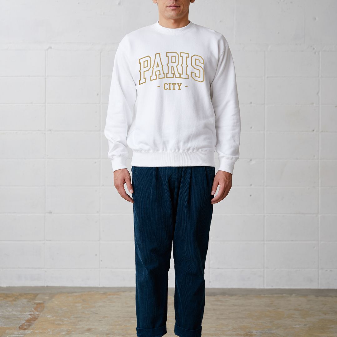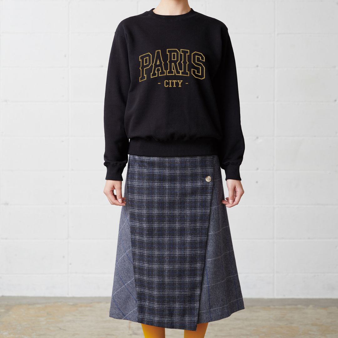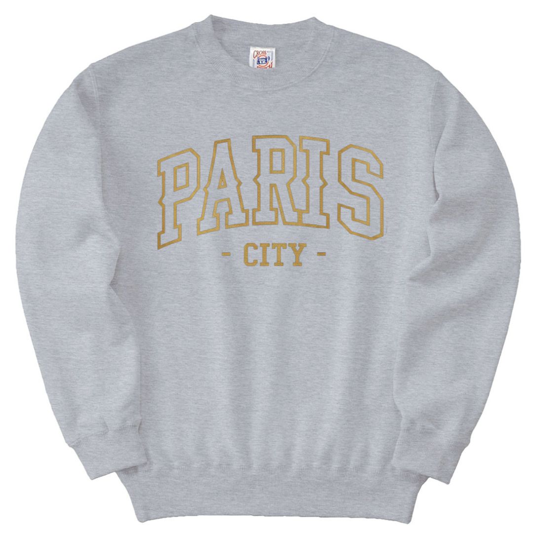 「PARIS CITY」のロゴが、パリのエレガンスとモダンさを象徴したトレーナー。