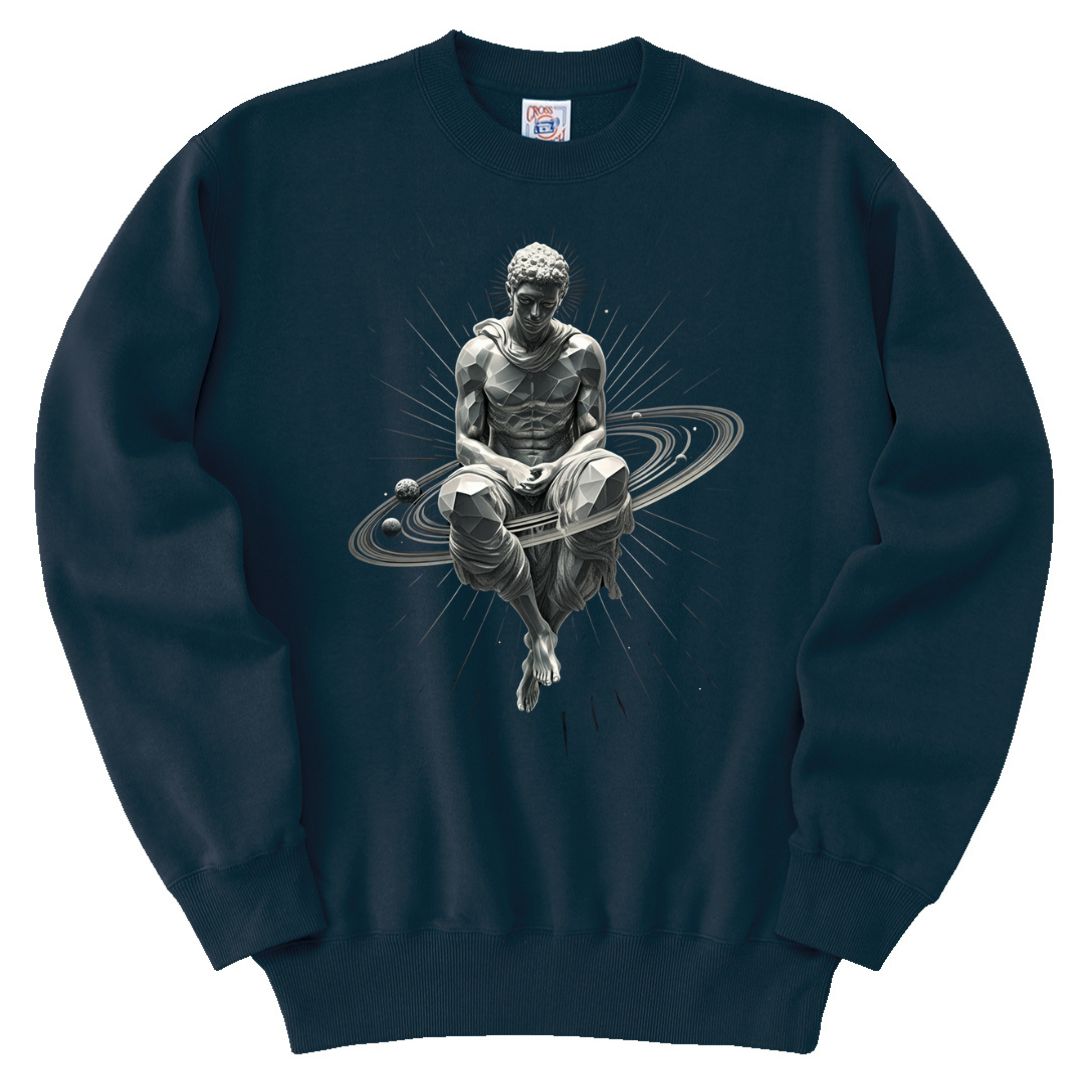 「COSMIC GUARDIAN」は、土星を背景に瞑想する守護者を描いた壮大なデザインのトレーナー。