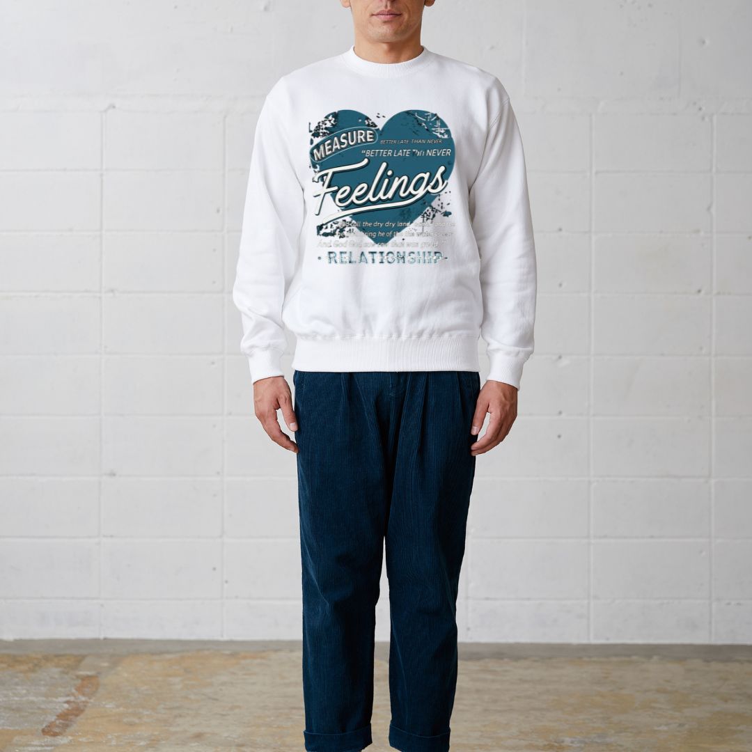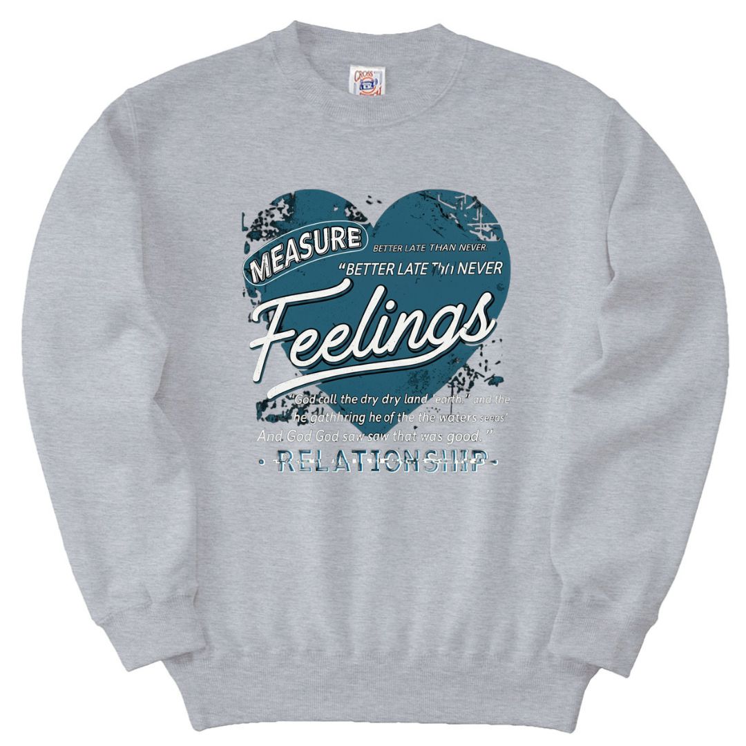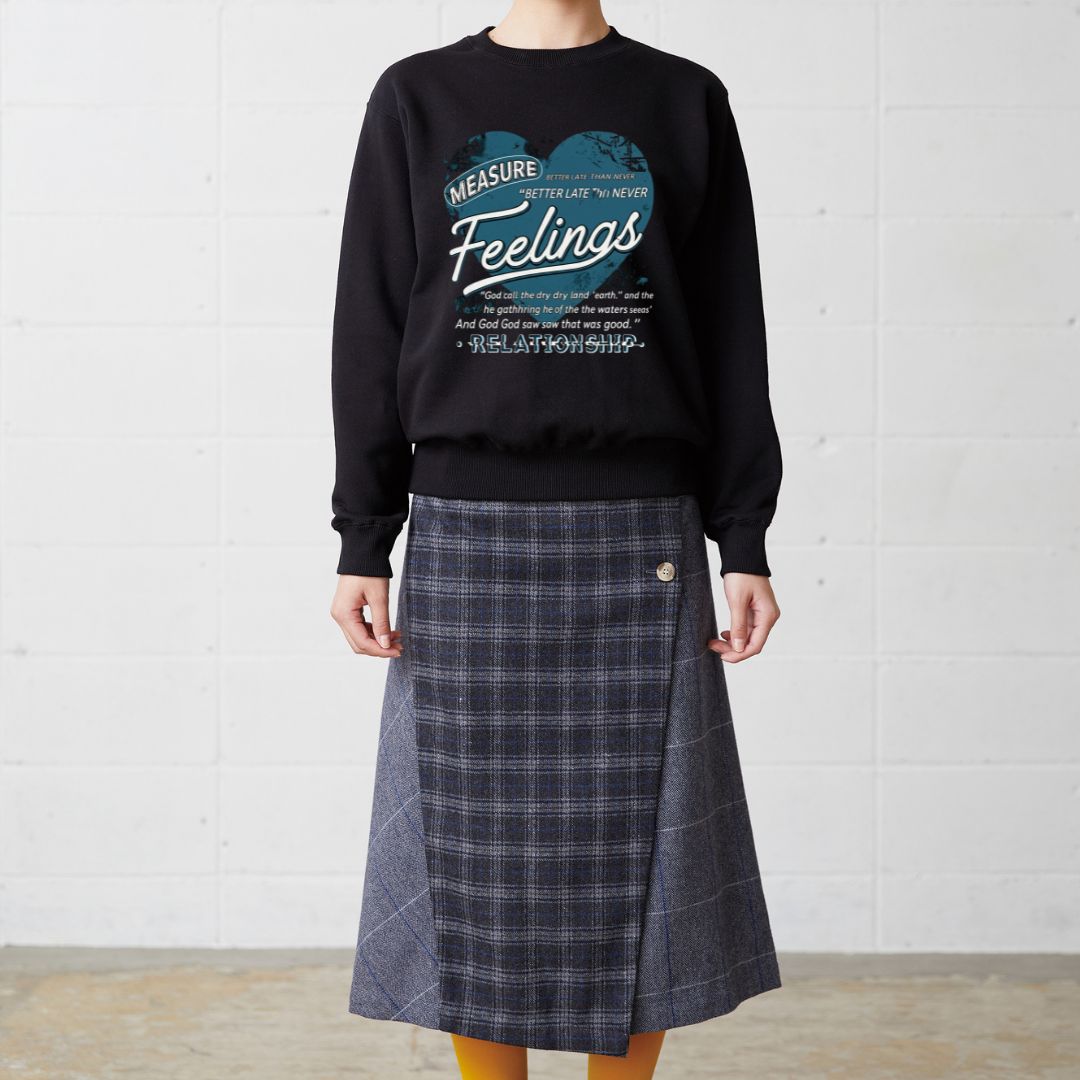 「MEASURE FEELINGS」は、感情や人間関係をテーマにしたデザインのトレーナー。