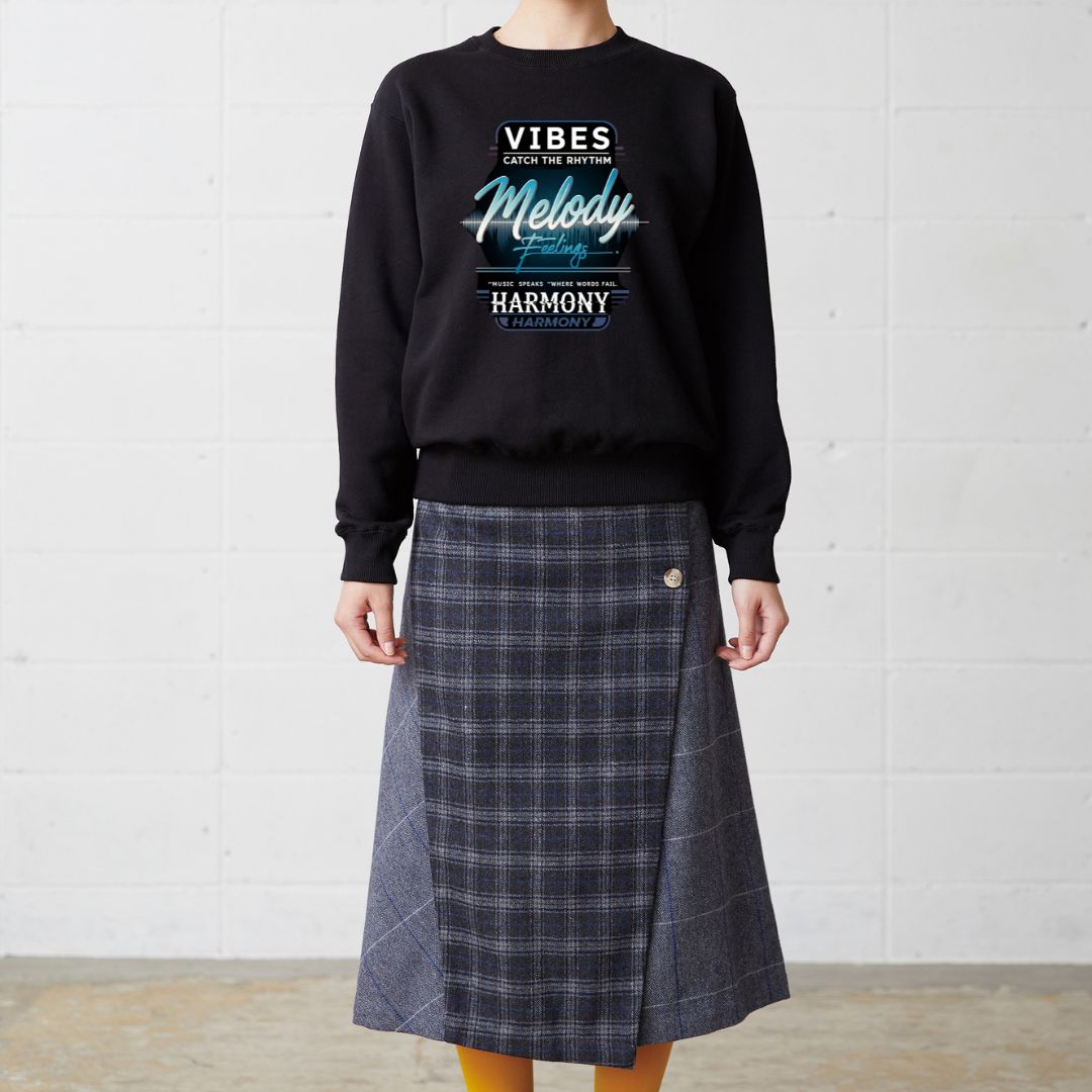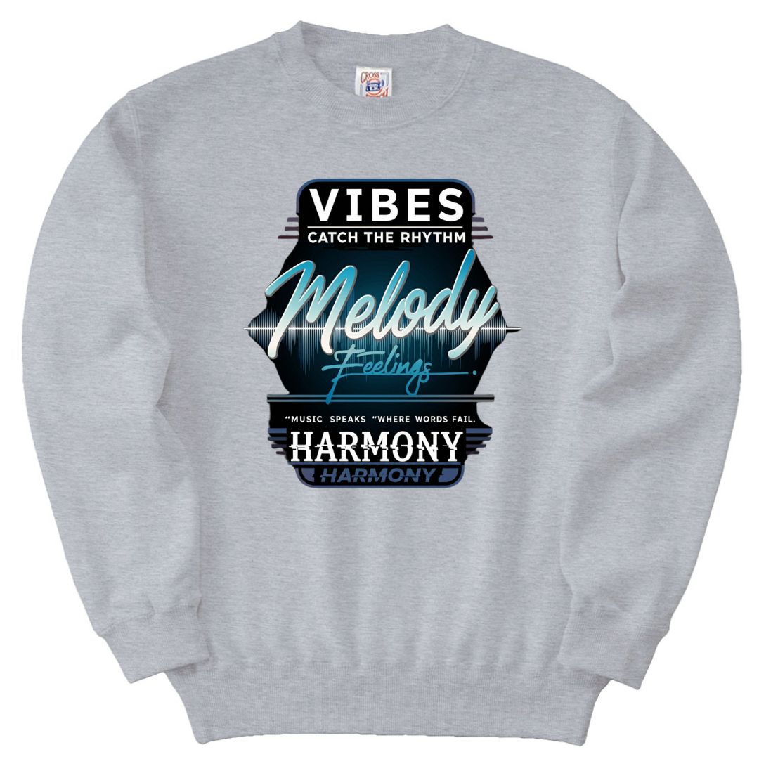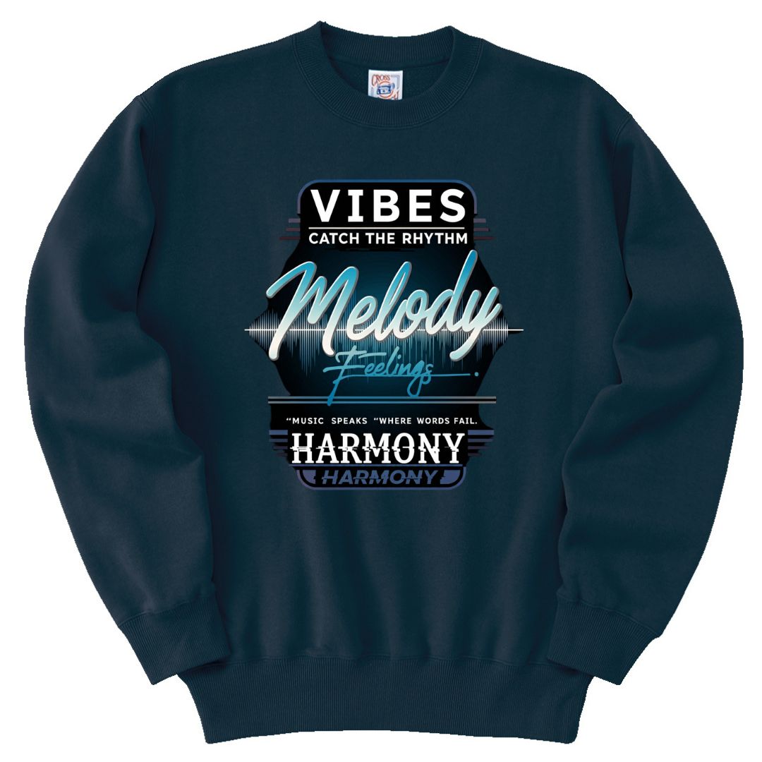 「VIBES & MELODY」は、音楽が言葉を超えて伝える感情と調和をテーマにしたトレーナー。