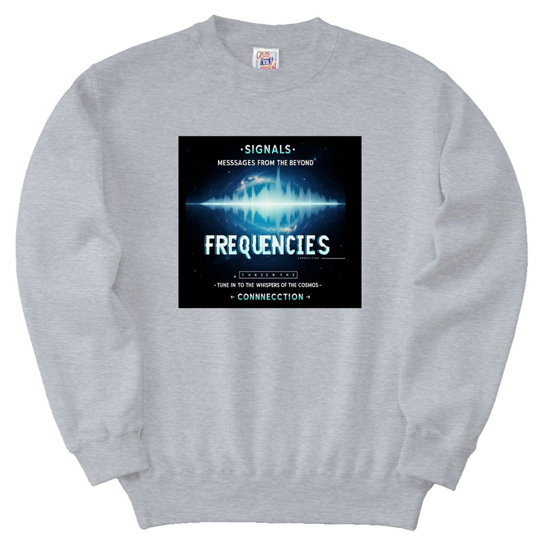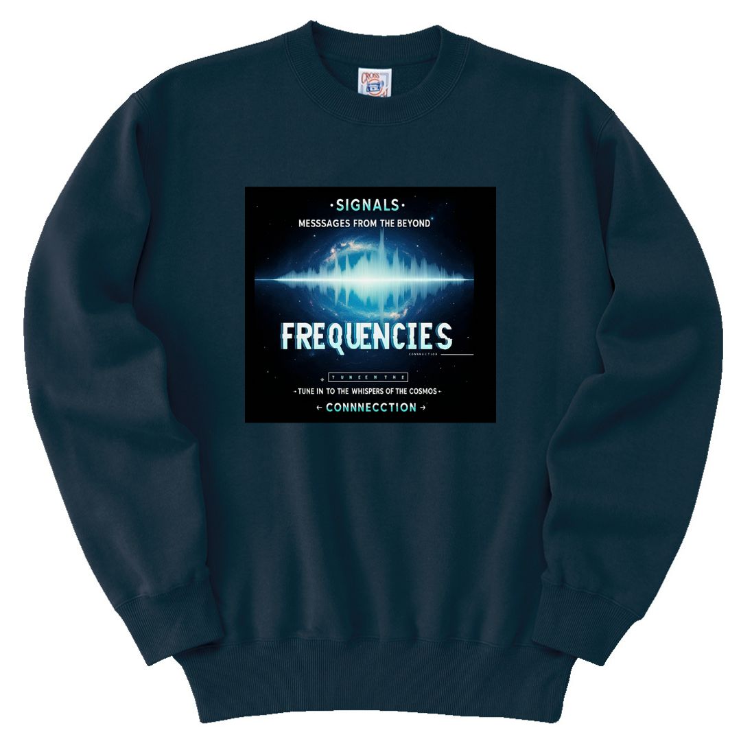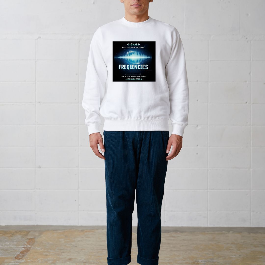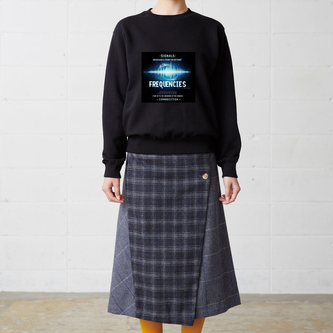 「FREQUENCIES」は、宇宙から届く見えない信号と調和のテーマを描いたトレーナー。