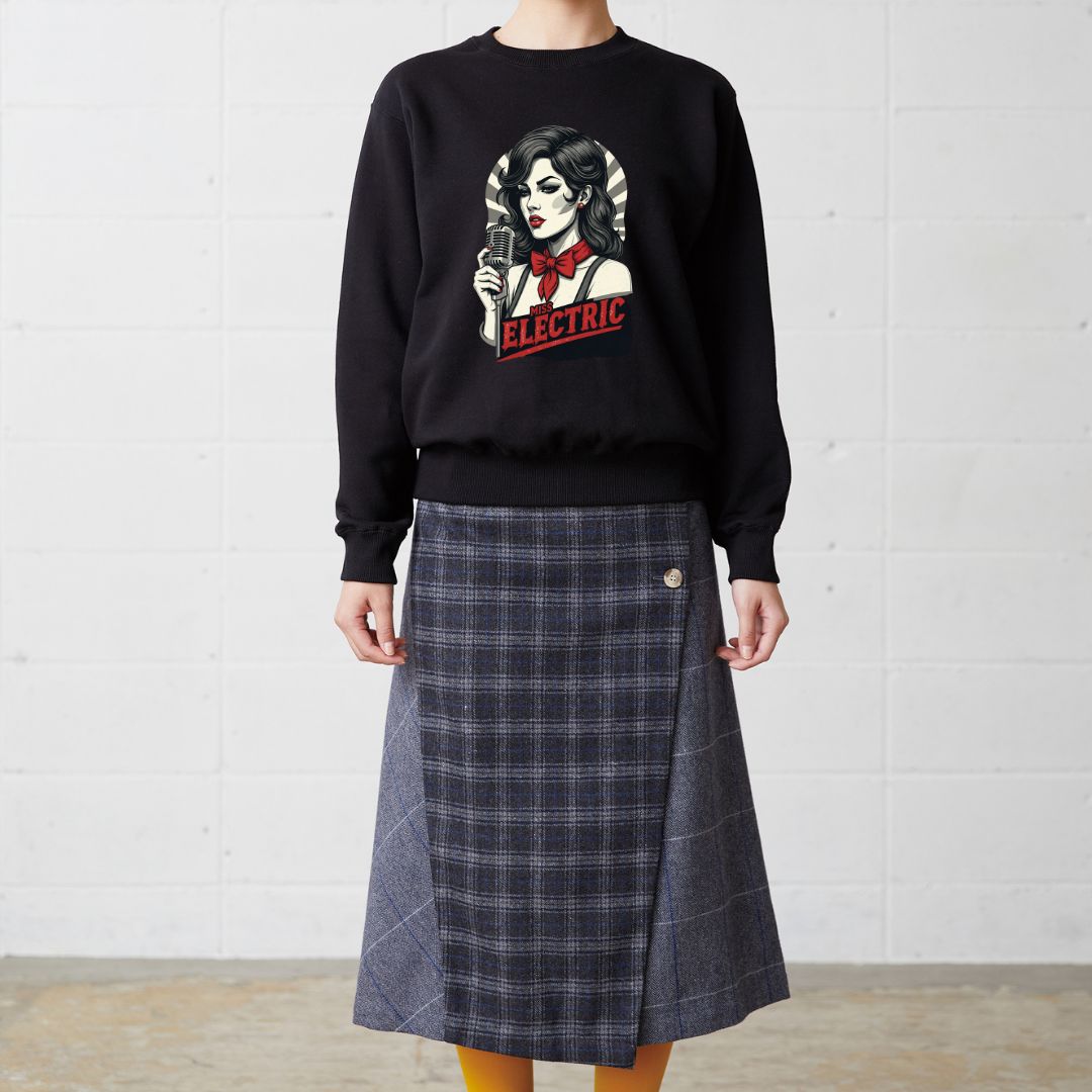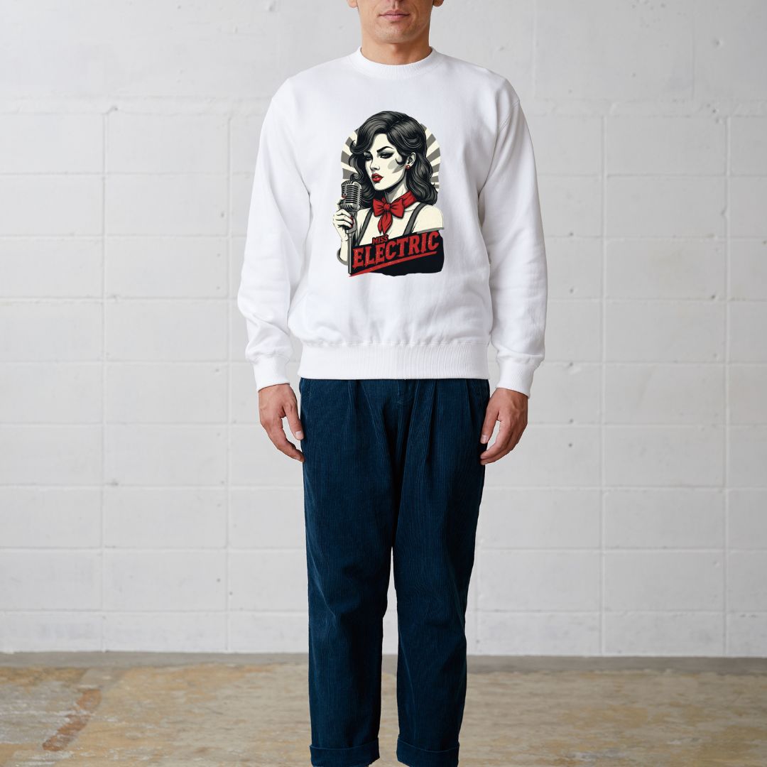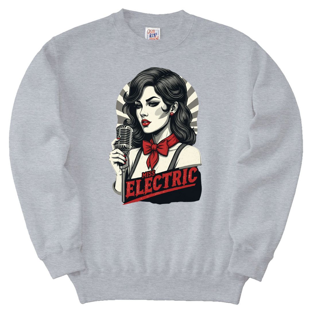 「MISS ELECTRIC」は、音楽とヴィンテージスタイルを融合させた魅力的なトレーナー。